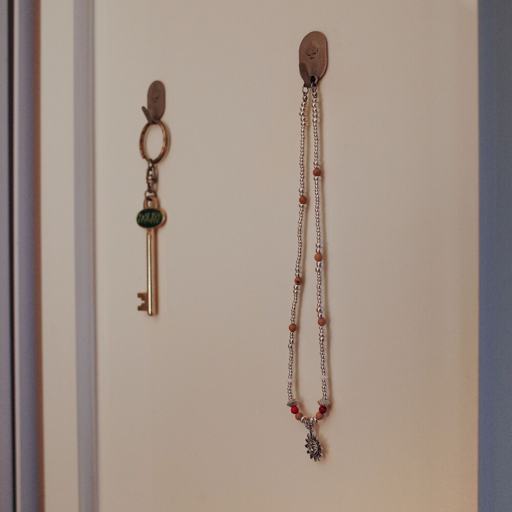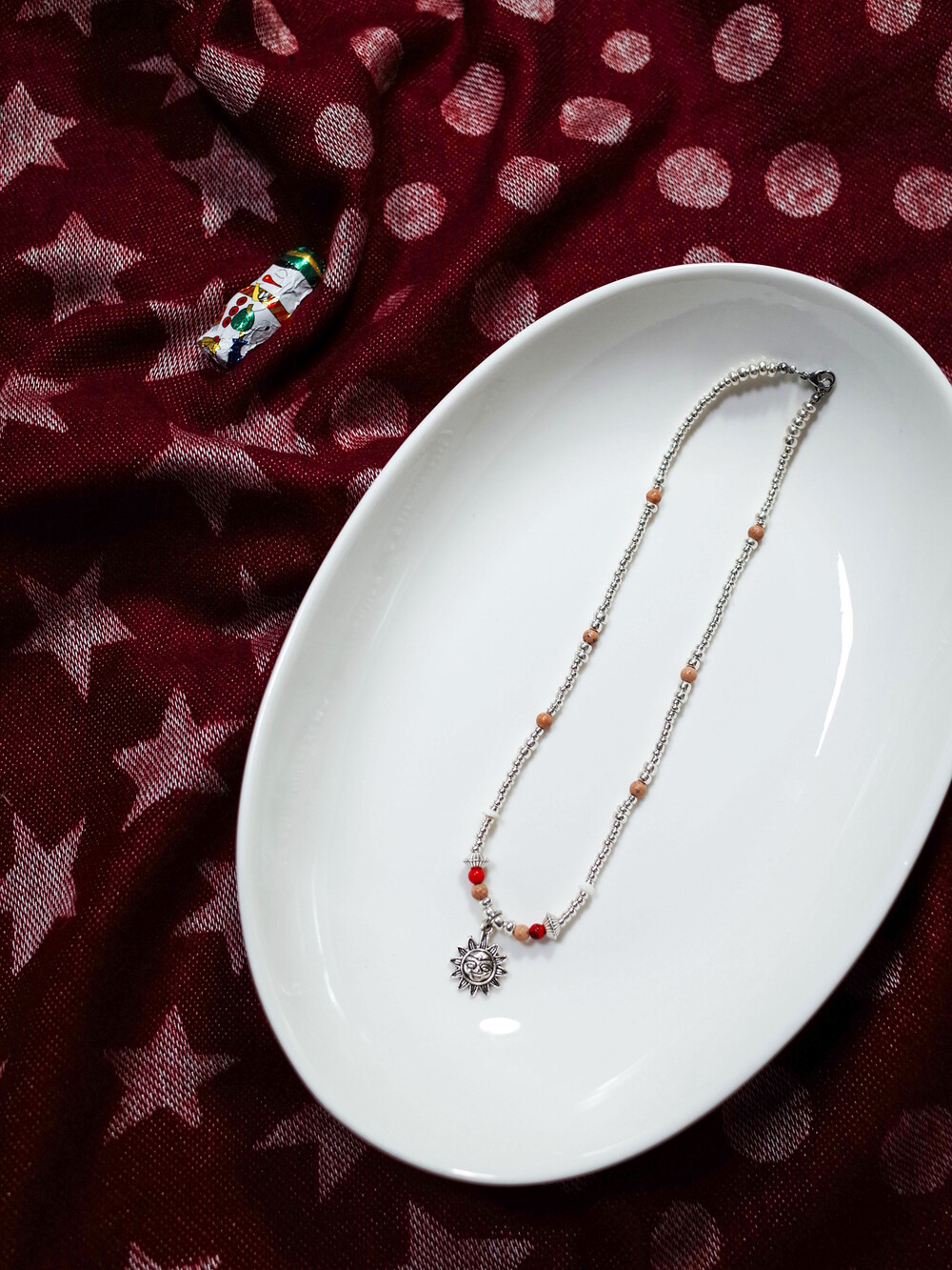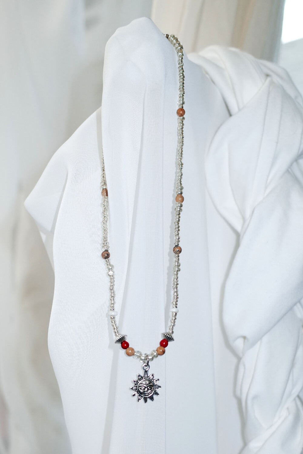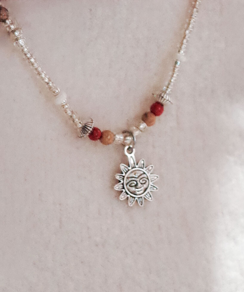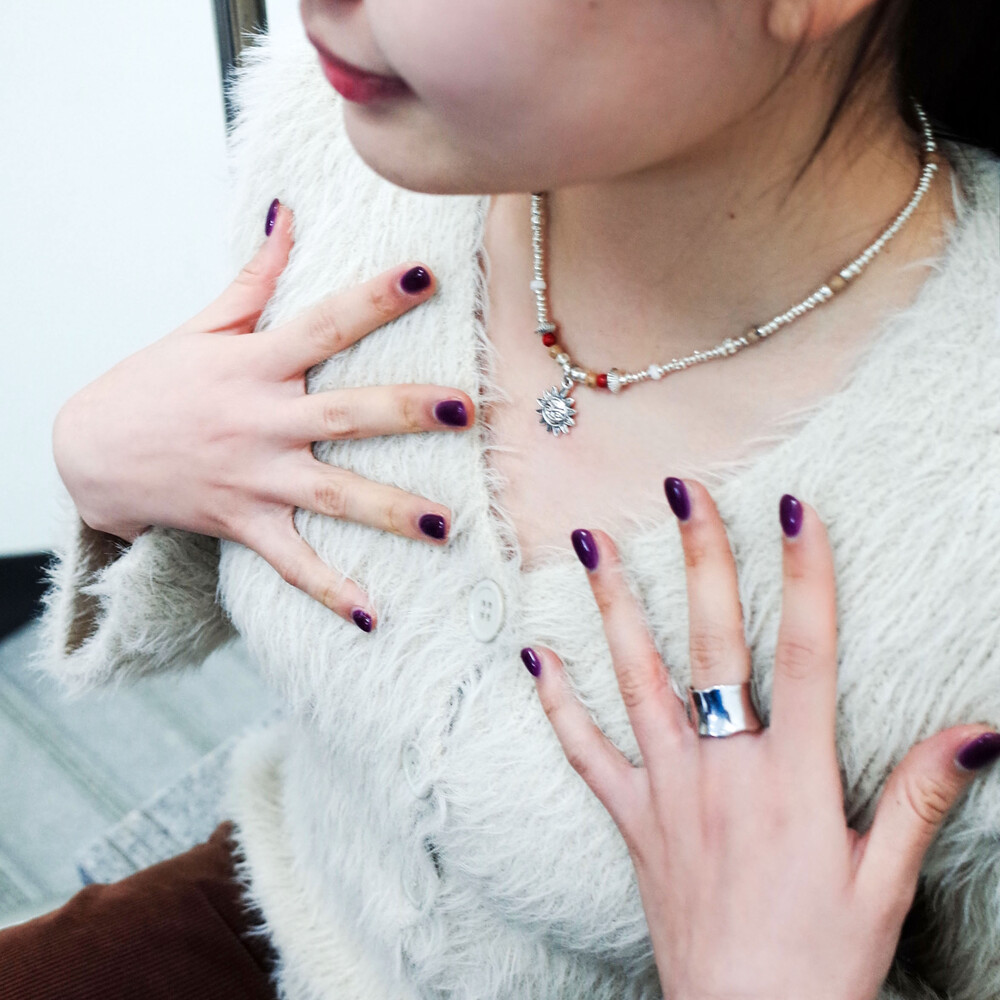 귀여운 얼굴 모양 해님 참이 달린 실버 목걸이입니다.