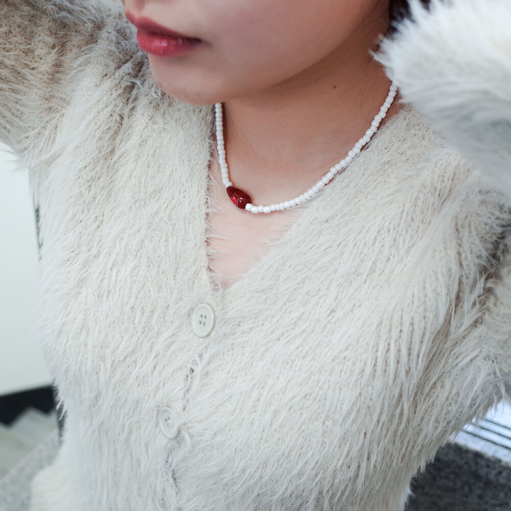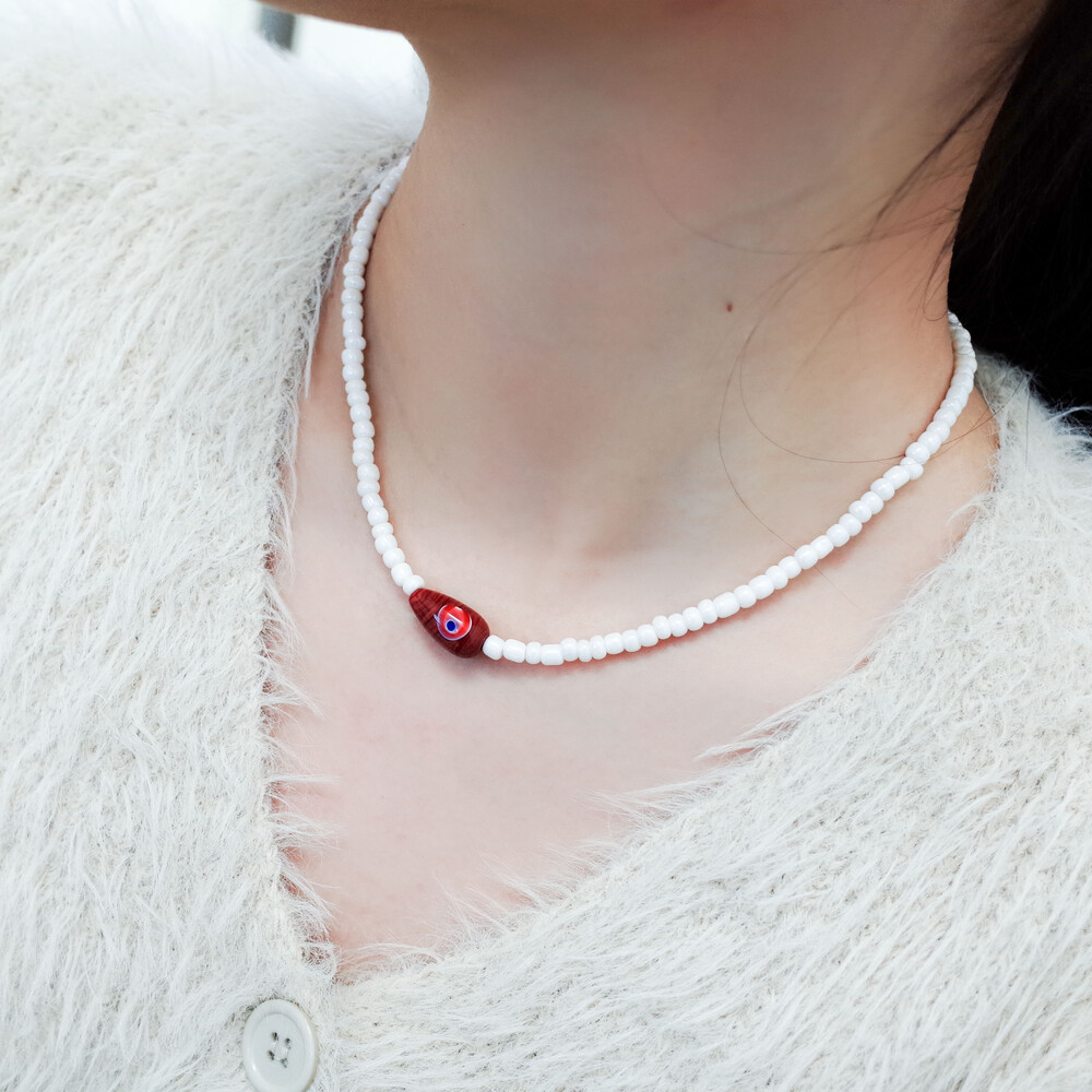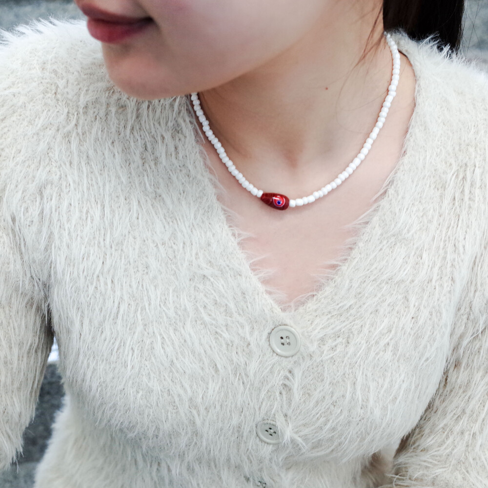 크기가 있는 하얀 비즈라 데일리 룩에 더 귀여운 포인트를 줍니다.