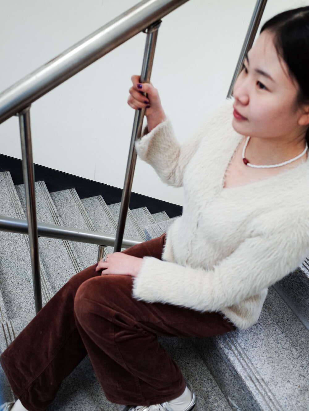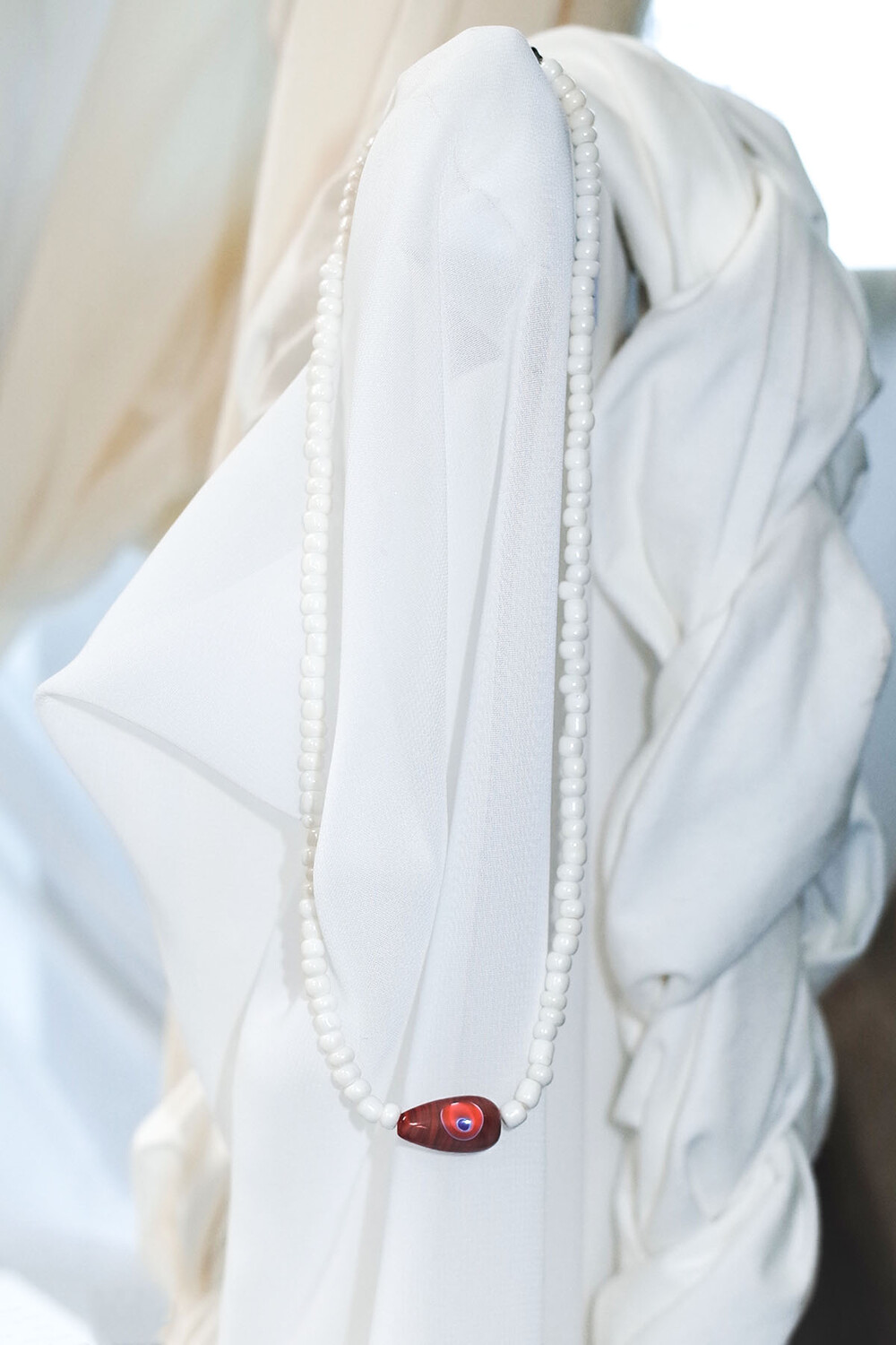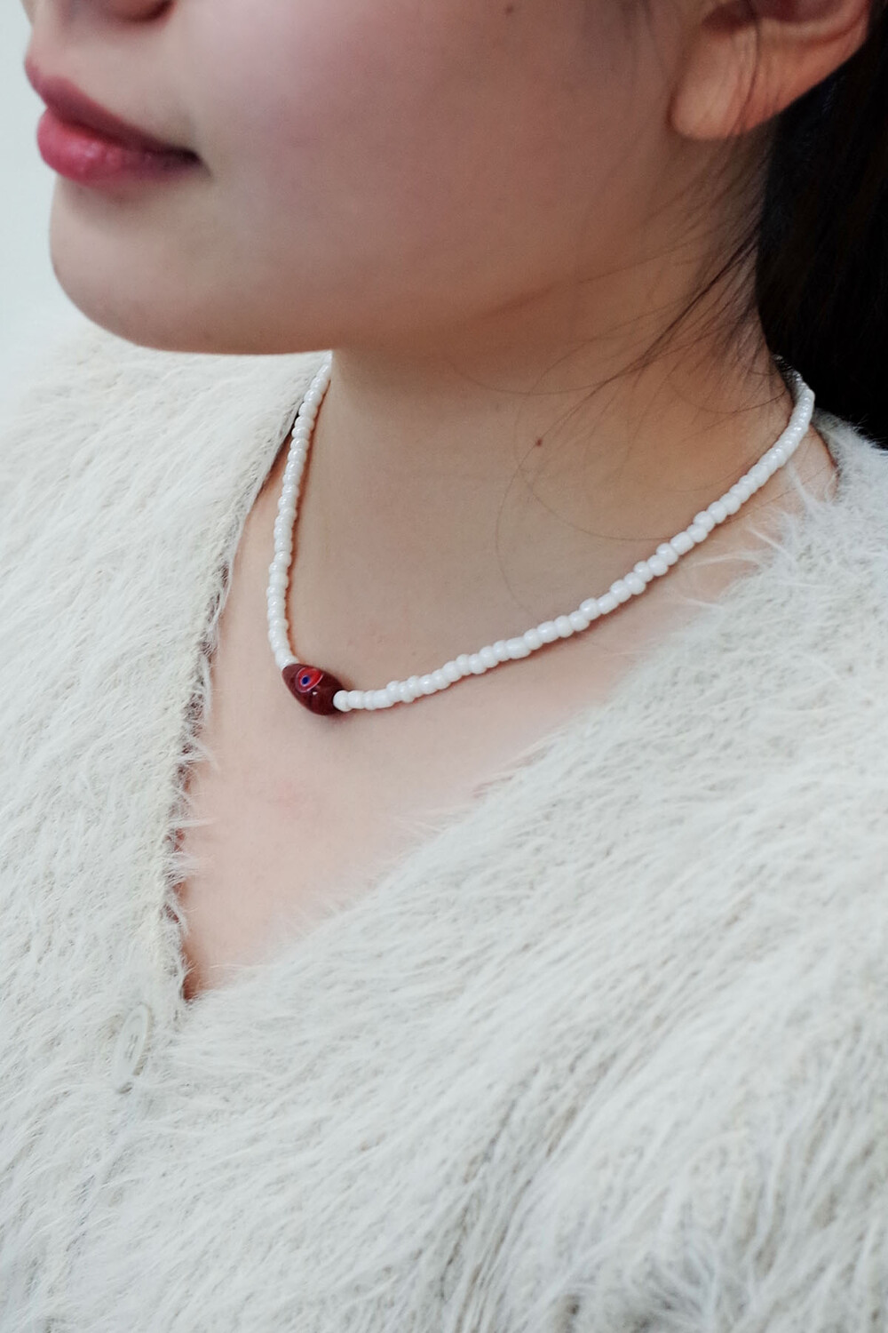 크기가 있는 하얀 비즈라 데일리 룩에 더 귀여운 포인트를 줍니다.