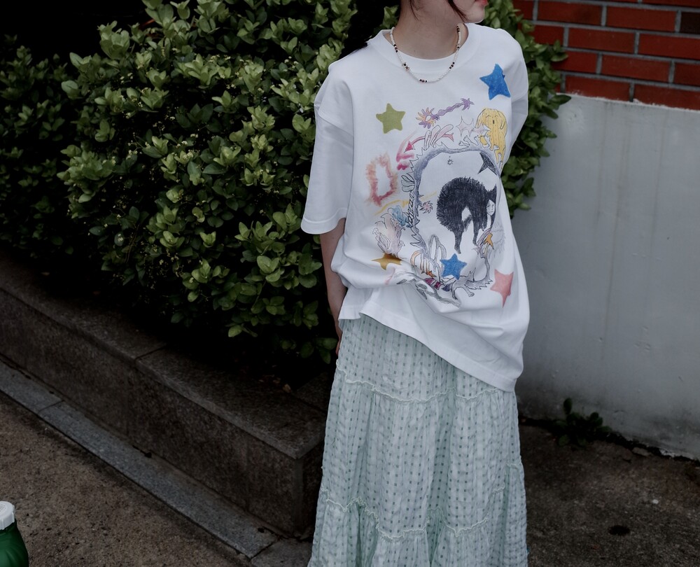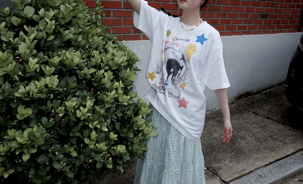 드로잉 북에 담겨있던 색연필 드로잉을 티셔츠에 옮겨보았습니다.