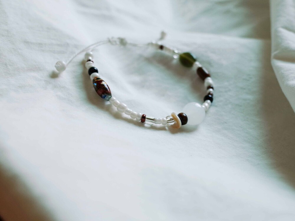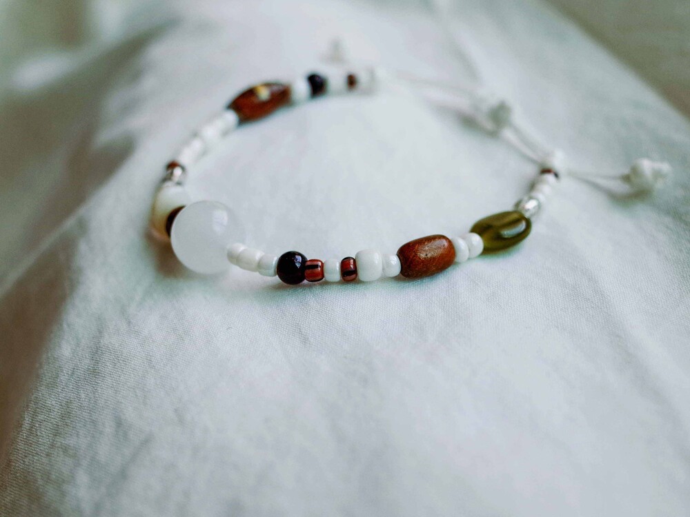 수담상점의 줄 팔찌는 매듭을 당겨 손목에 맞게 길이 조절이 가능해요.