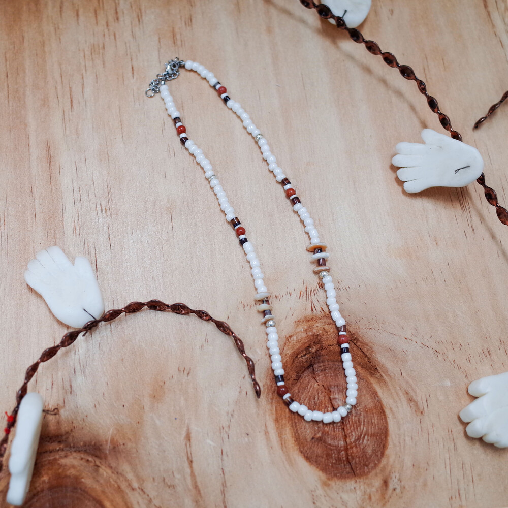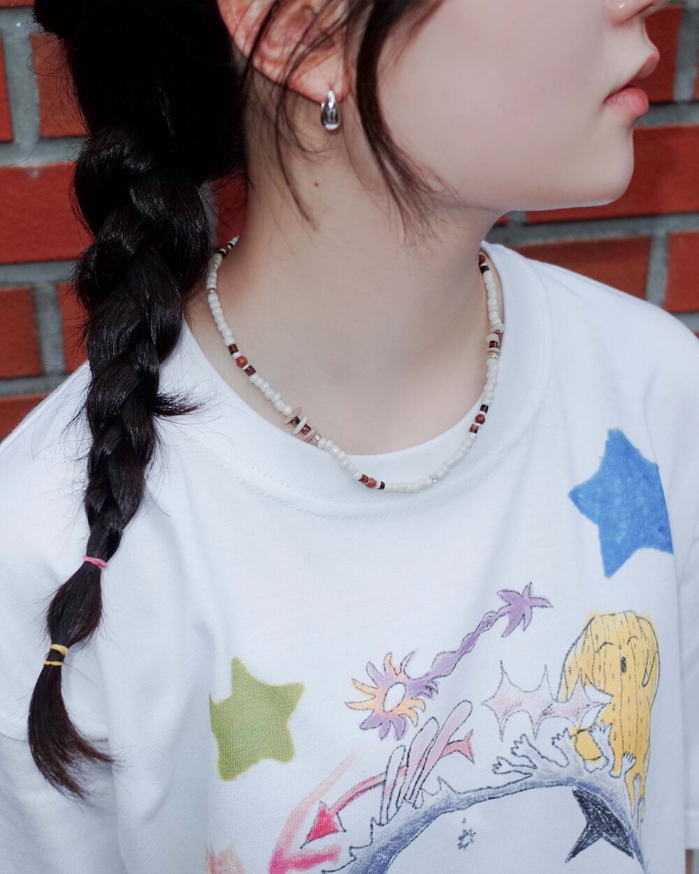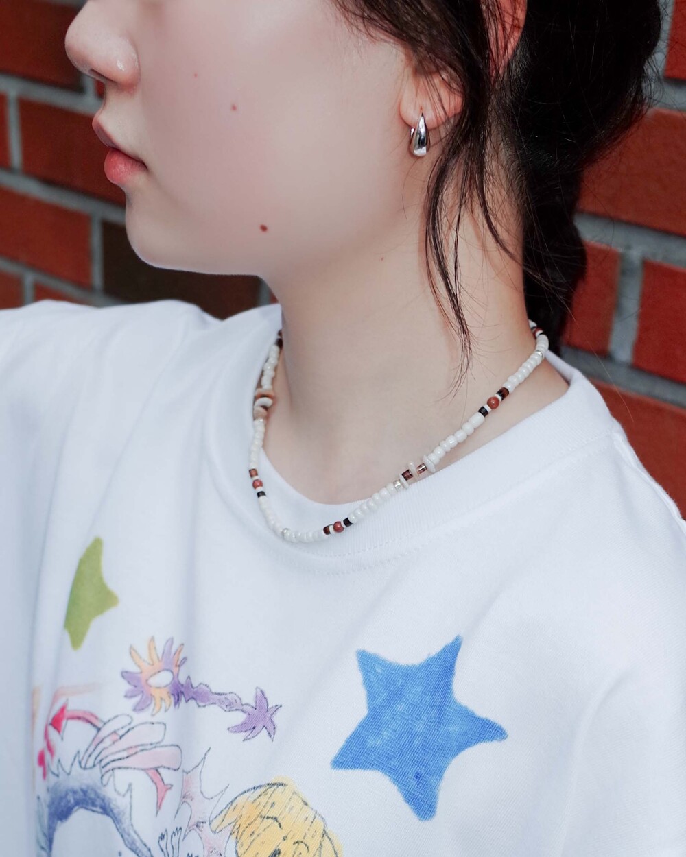 조금씩 크기와 모양이 다른 조개 비즈가 이 목걸이의 귀여운 포인트랍니다.