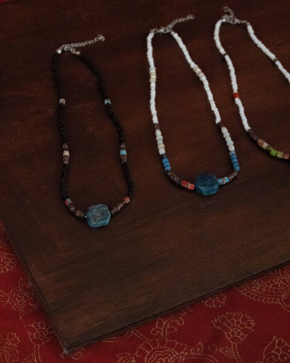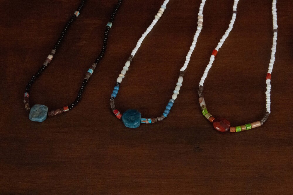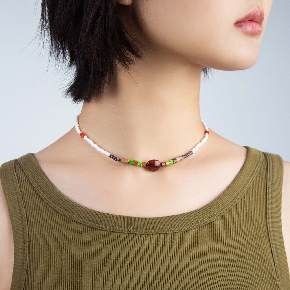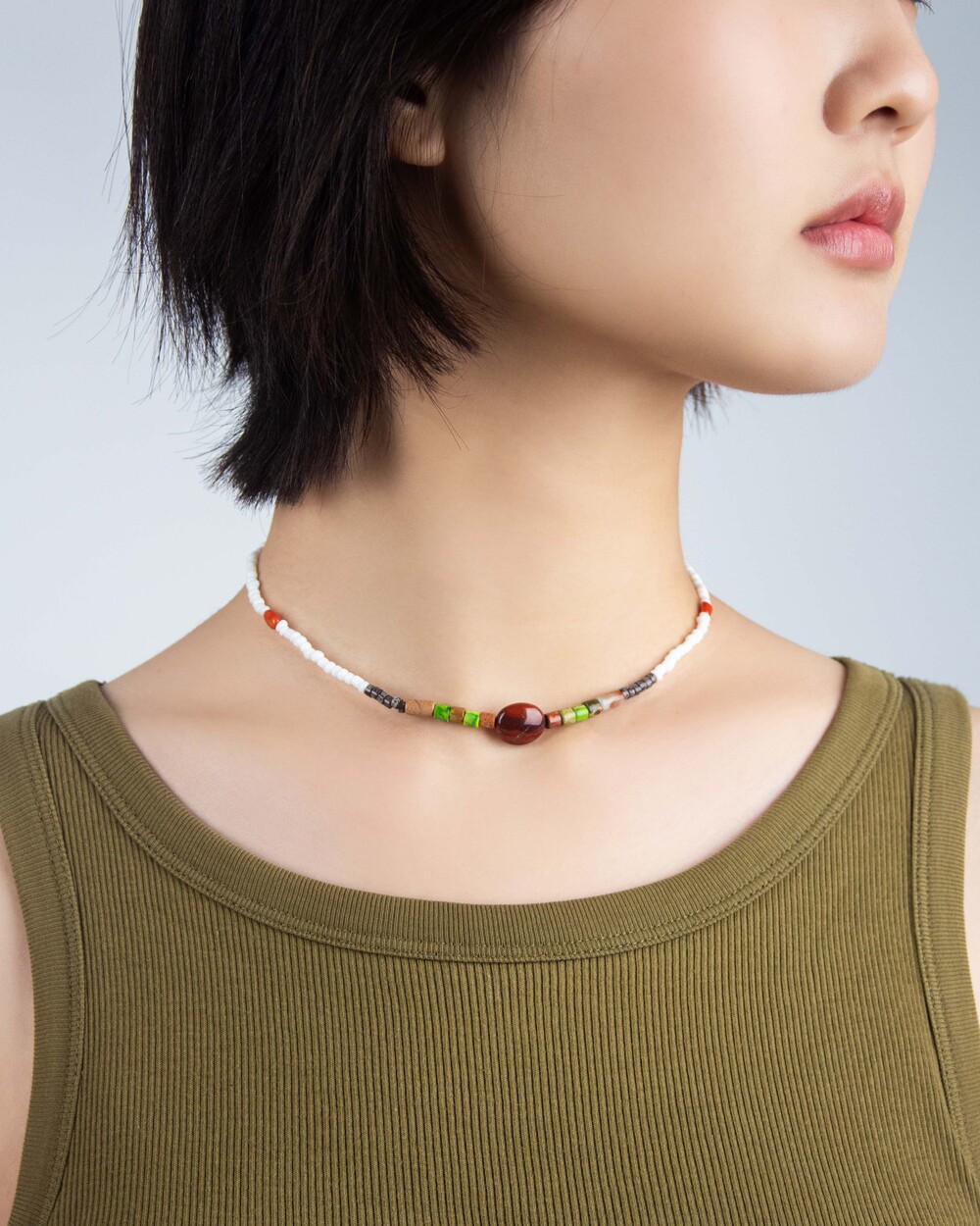 베이스 비즈가 흰색이라 어느 옷에나 어울리는 밝은 목걸이입니다.