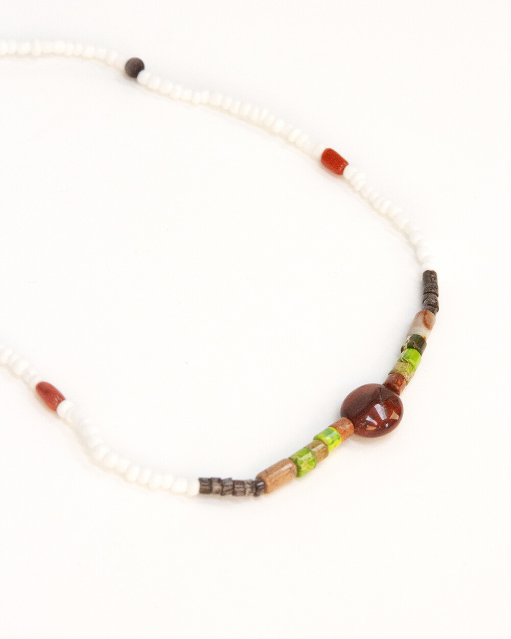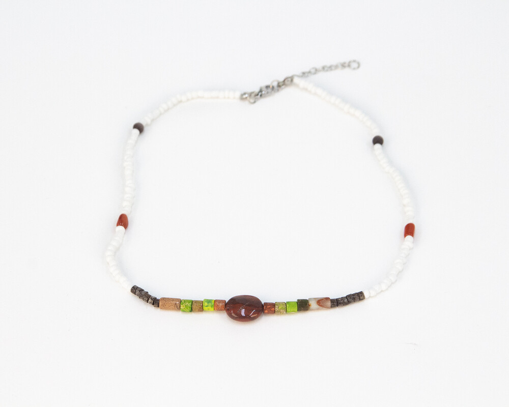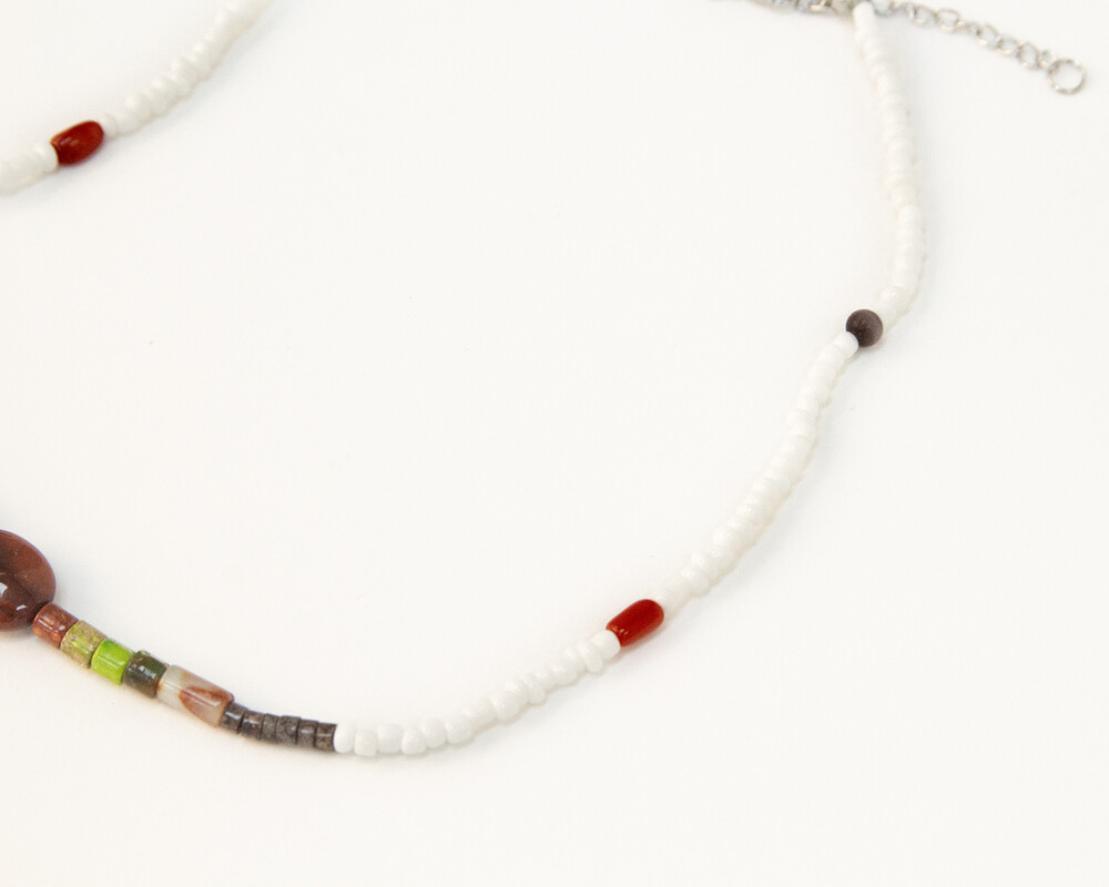 대추야자열매 같은 오묘한 붉은 갈색 비즈가 포인트로 들어갔어요.