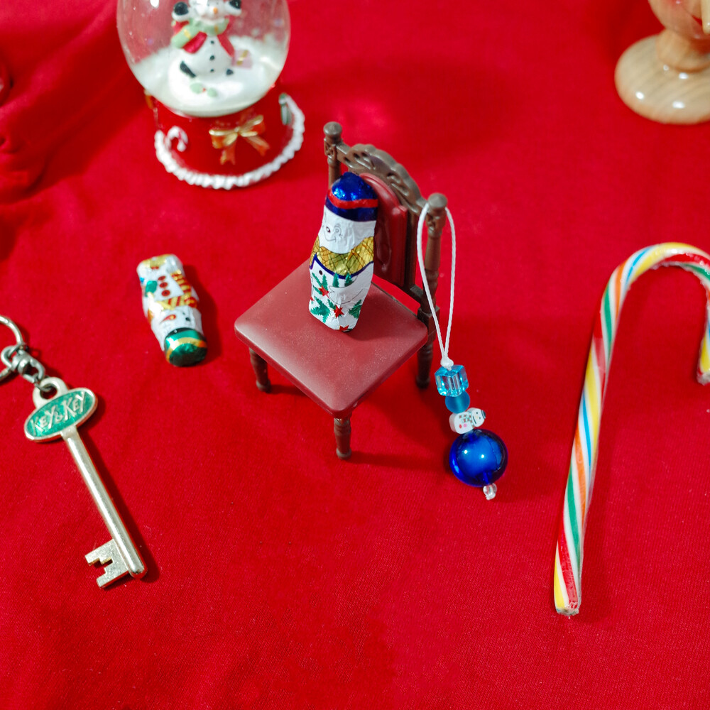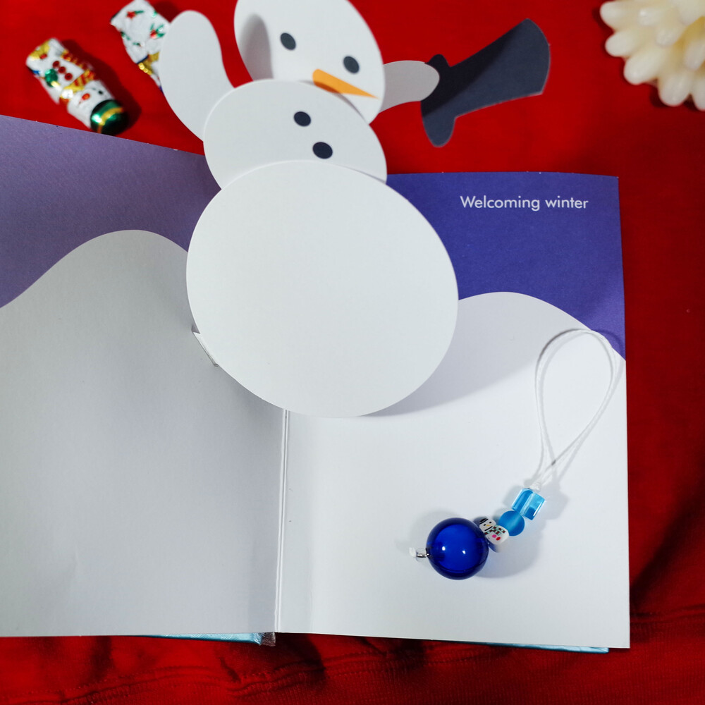 작은 눈사람이 들어간 깜찍한 키링이에요.