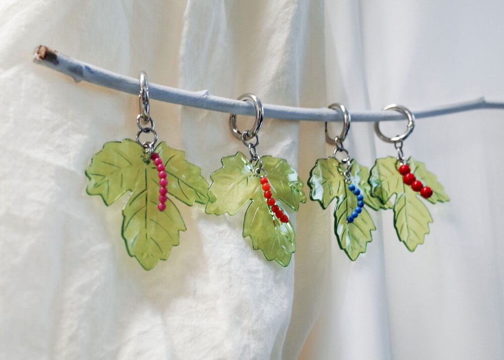 제품에 사용된 나뭇잎 모양의 플라스틱 비즈에는제조 및 생산 과정에서 생기는 미세한 스크래치(잔기스)가 있을 수 있습니다.이는 재료 특성상 불가피한 부분으로,해당 사유로 인한 교환 및 환불은 어려운 점 양해 부탁드립니다.
