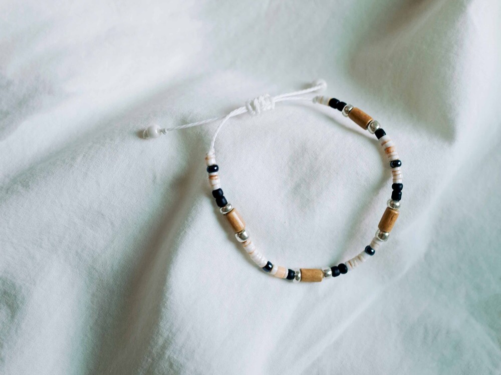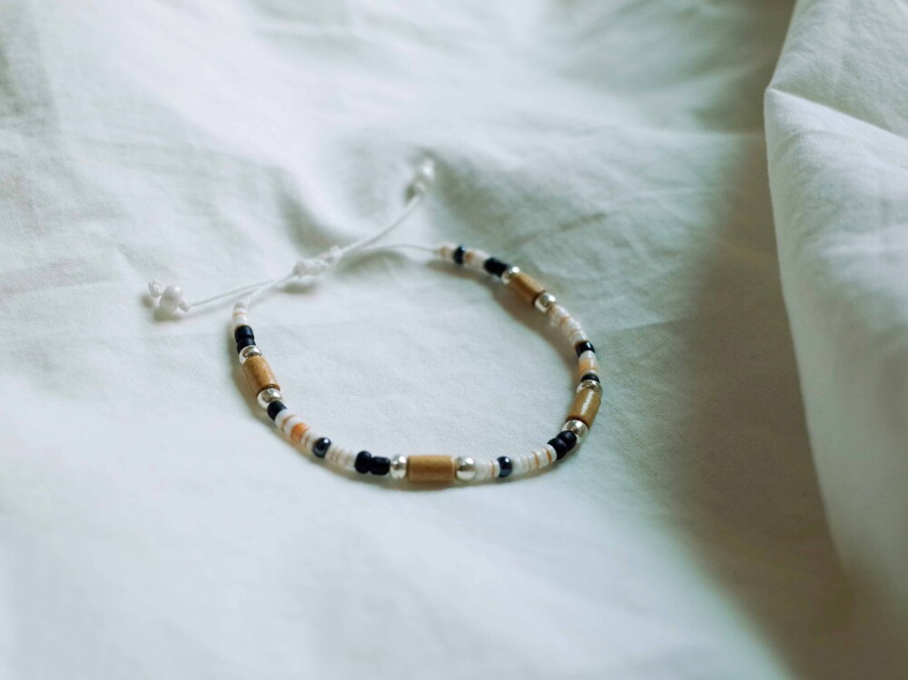 수담상점의 줄 팔찌는 매듭을 당겨 손목에 맞게 길이 조절이 가능해요.