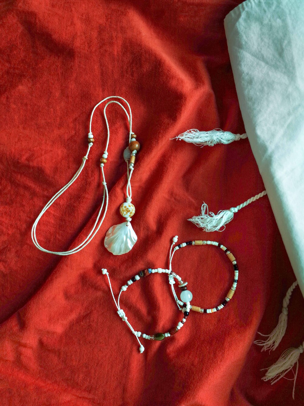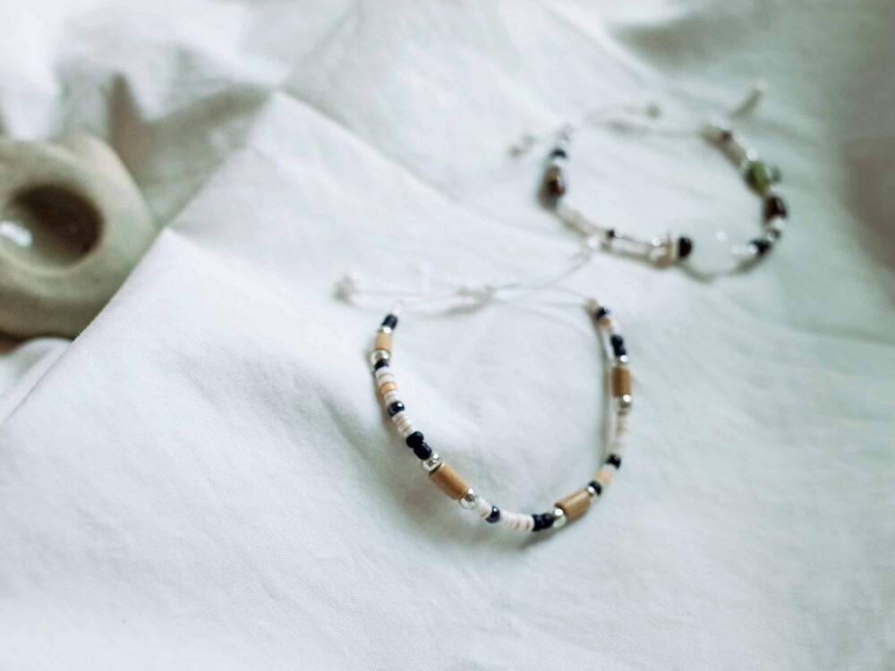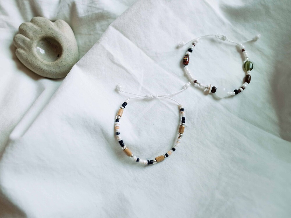 다양한 질감과 컬러가 조화롭게 어우러진 팔찌인 만큼